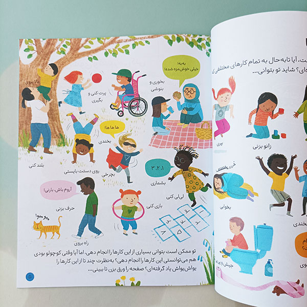 همچنین، نویسنده با تأکید بر ترویج تنوع و پذیرش تفاوتها به معرفی انواع مختلف بدنها میپردازد تا کودکان بدانند تفاوتها طبیعیاند و باید آنها را بپذیرند.